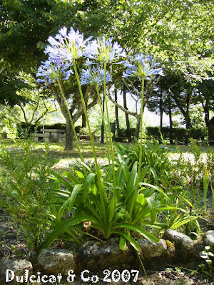 Agapanto azul : Agapanthus africanus (agápe, amor + ánthos, flor: planta aliácea ) no recinto de Nossa Senhora da Guia