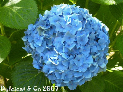 Hortênsia : Hydrangea macropylla variedade azul que necessita um solo muito ácido para florir azul,senão em terreno alcalino, a flor sairá de cor rosa.