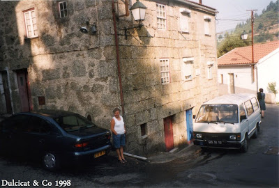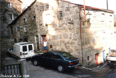 A casa parece grande mas é só a parte direita ( onde está a minha mãe) e a parte da porta vermelha da loja até ao cimo que pertence aos meus pais em 1998.