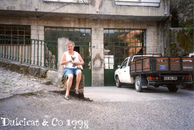 Em 1999, quando voltei a Loriga no mês de agosto, a gata tinha dado à luz três filhotes, dois pretitos e um malhado cinzento ( 2 machos,1 preto e 1 malhado, e 1 fêmea preta). Estavam abrigados num cartão frente à loja do Cabral.