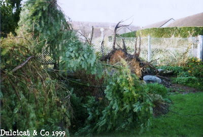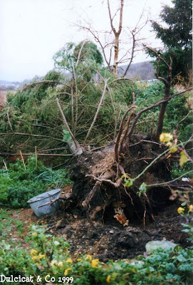 Também tive alguns danos que foram muito menos importantes em comparação a alguns outros: só algumas telhas partidas e uma árvore desenraizada. Quando me apercebi da tempestade, eram mais ou menos 6 horas da manhã , a casa tremia por ela toda tanto o vento assoprava com força! Foi um despertar muito temente! Este fenómeno durou até ao 28 de Dezembro com 2 tempestades, Lothar e Martin.